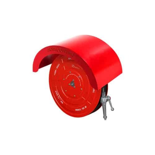 در هوزریل آتش نشانی دیواری، بخش فوقانی هوزریل دارای سایبان یا پوشش محافظ است تا از آسیب ناشی از بارش یا نور مستقیم خورشید جلوگیری شود؛ بهویژه زمانی که نصب در فضای باز انجام میشود. همچنین، بسیاری از نمونهها قابلیت تنظیم زاویه قرقره برای سهولت در بازکردن شیلنگ دارند.